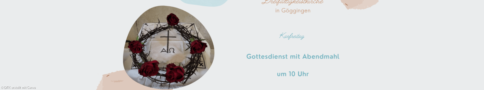 Bildrechte DFK Am Karfreitag gedenken wir des Leidens und Sterbens Jesu Christi – ein stiller, kraftvoller Moment im Kirchenjahr.Herzliche Einladung zum Abendmahlgottesdienst um 10 Uhr, in dem wir Raum für Besinnung, Gebet und Gemeinschaft finden.