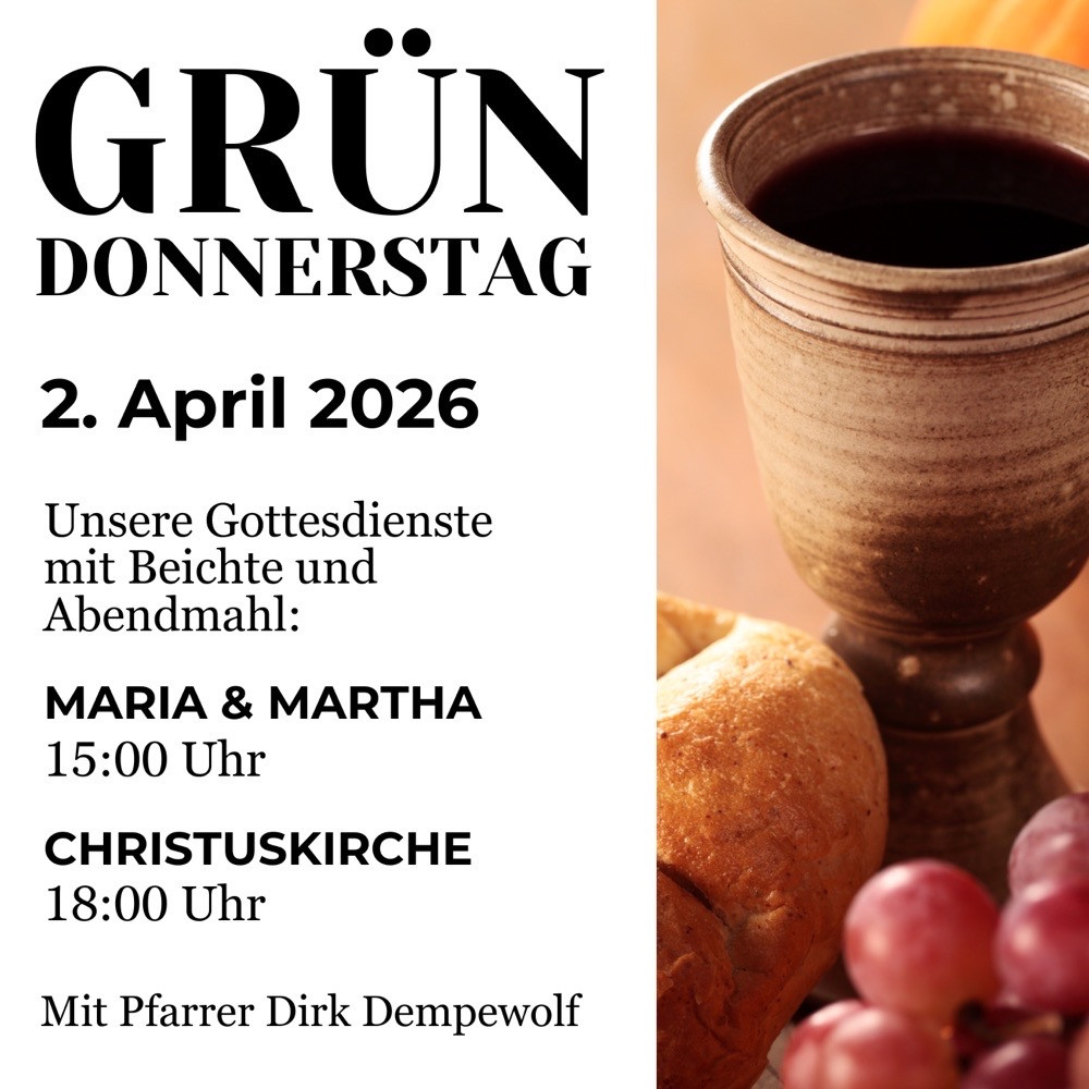 Wir feiern an Tischen in der Kirche Abendmahl und essen gemeinsam. Es gibt Pellkartoffeln. Wir bitten um Dips oder andere Leckereien, die zu Pellkartoffeln passen.